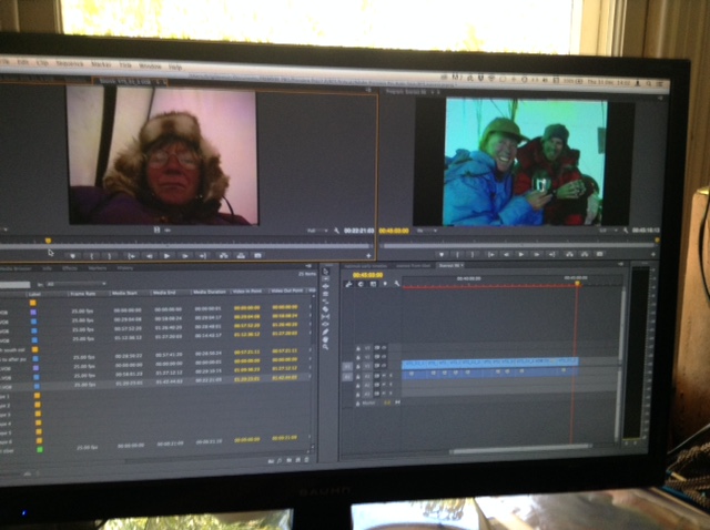 Editing footage from Everest 1996. Tantrum at Camp Two on left, Tomas and Tina Sjogren on right. I used to call them TNT, the Explosive Couple! We got on like a house on fire.